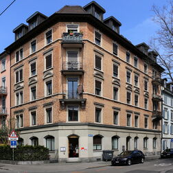 Der Erwerb dieses Hauses war 1919 der Anlass zur Gründung der Genossenschaft zum Korn. Hier befand sich das erste VHTL-Sekretariat. Nach dem Kauf liess die Genossenschaft zum Korn das Haus mit ursprünglich vier kleinen Läden mehrfach umbauen. Der erste Stock wurde als Sitz des VHTL-Zentralsekretariats und Geschäftsstelle der Genossenschaft eingerichtet, das Parterre der Maler- und Gipsergenossenschaft vermietet. Als das Zentralsekretariat 1941 ins Haus zum Korn wechselte, blieb die Sektion Zürich an der Körnerstrasse. 1948 wurde ein Schalterraum für den Zahlungsverkehr eingerichtet, 1980 ein Sitzungszimmer in eine kleine Wohnung umgebaut. Heute befindet sich die Beratungsstelle Impuls des Schweizerischen Arbeiterhilfswerks (SAH) im Erdgeschoss, den kleinen Saal nutzt die Ballettschule Kerscher-Jenny. Das Haus ist vor Kurzem ins Inventar der kunst- und kulturhistorischen Schutzobjekte der Stadt Zürich aufgenommen worden.